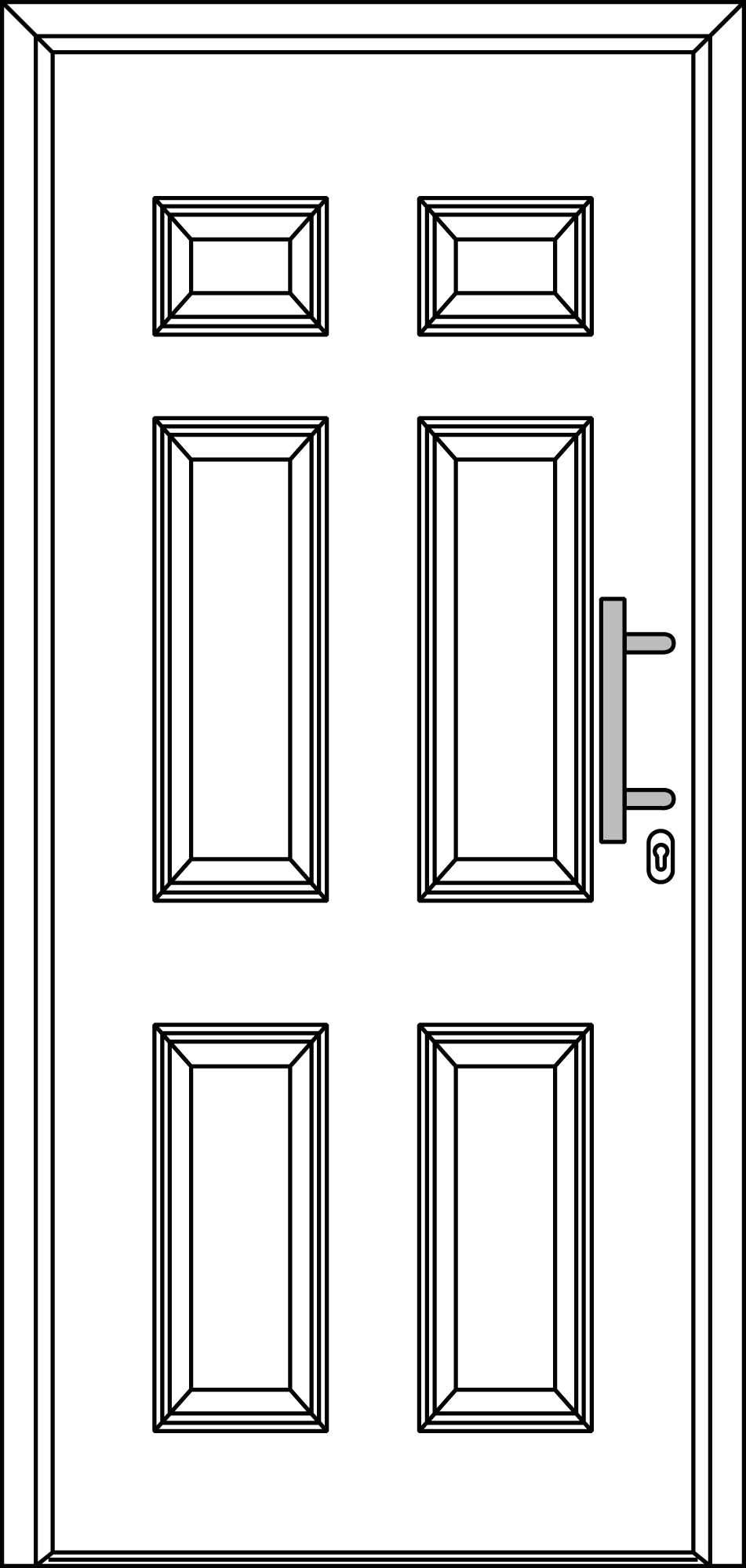 | Türblattaufbau: | Außen- und Innenseite flügelüberdeckend, thermisch getrennt, vierseitiger Dickfalz, vollflächig ausgeschäumt |