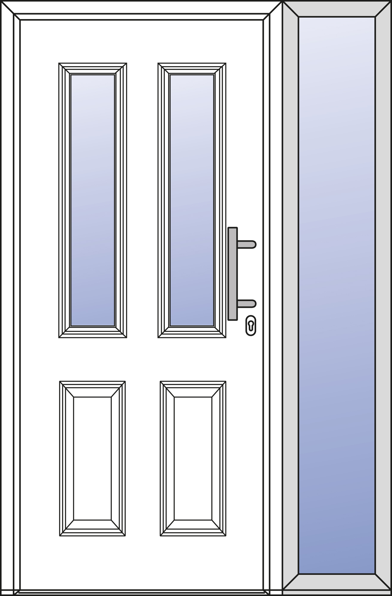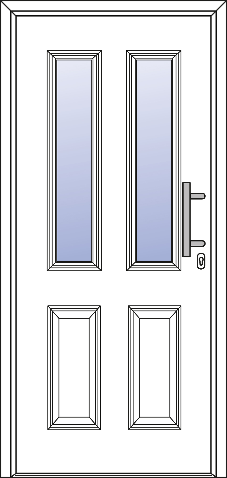 | Zarge: | farblich passend zum Türblatt , thermisch getrennte Aluminium-Blockzarge als Profil A3 oder A4 |