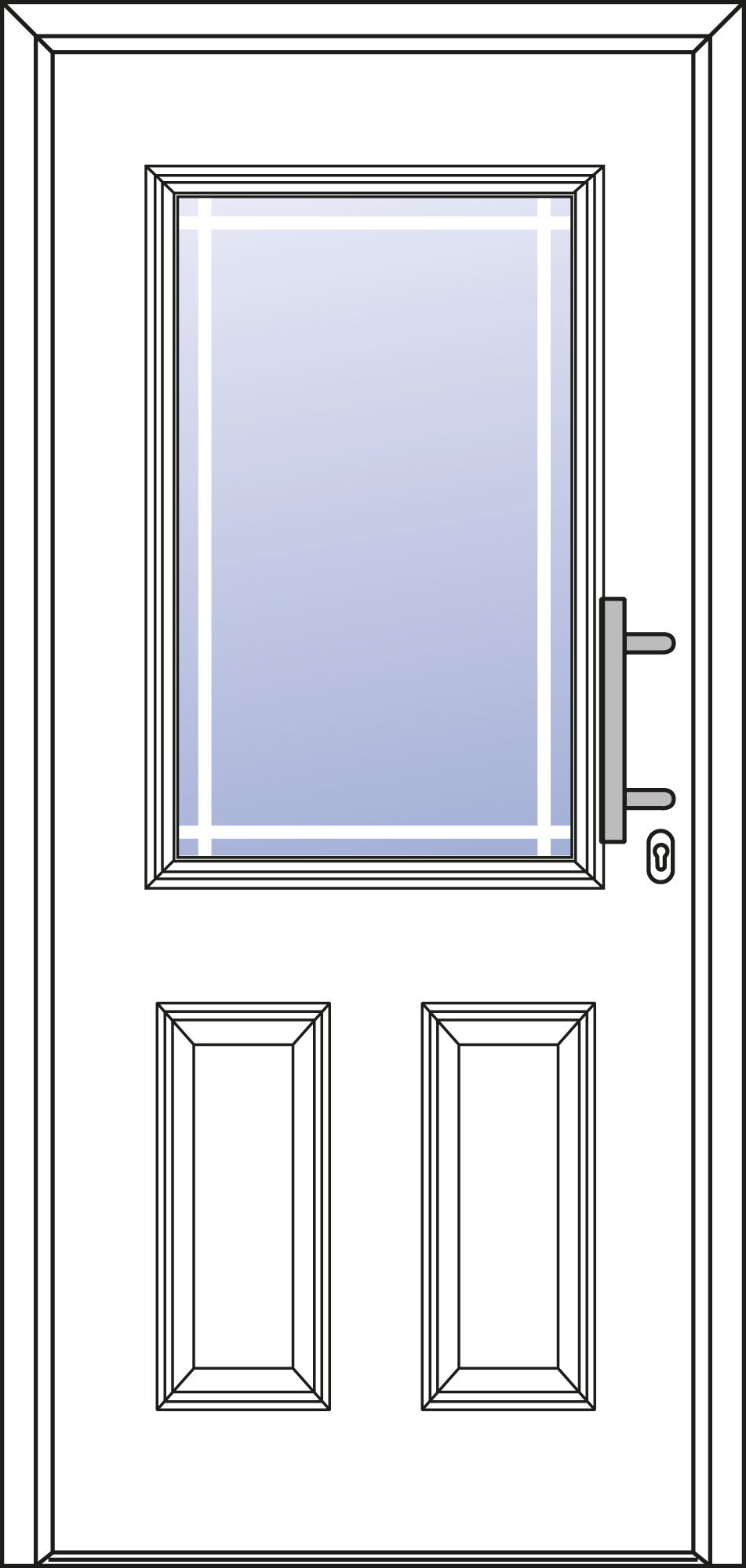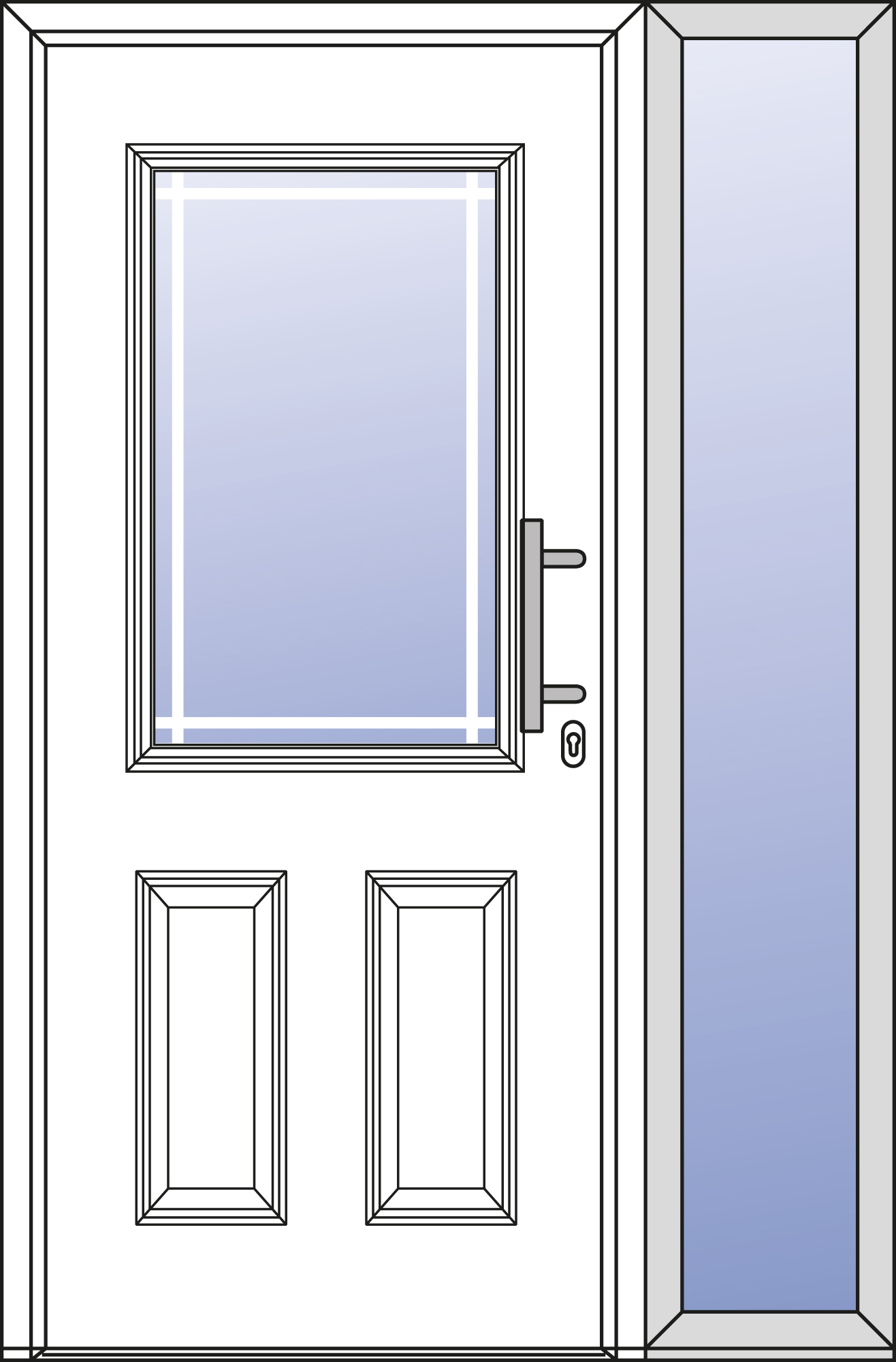 | Zarge: | farblich passend zum Türblatt , thermisch getrennte Aluminium-Blockzarge als Profil A3 oder A4 |
