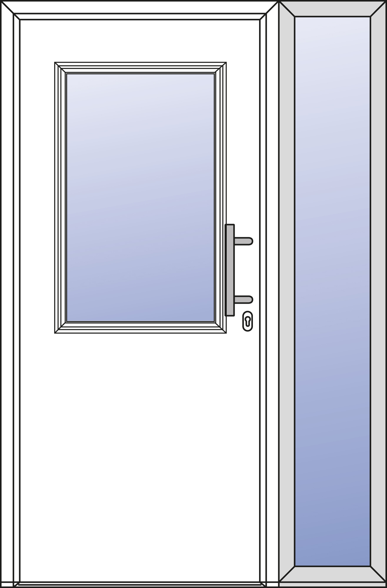 | Zarge: | farblich passend zum Türblatt , thermisch getrennte Aluminium-Blockzarge als Profil A3 oder A4 |