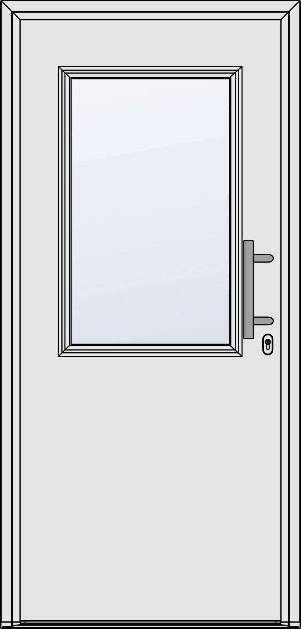 | Türblattaufbau: | Außen- und Innenseite flügelüberdeckend, thermisch getrennt, vierseitiger Dickfalz, vollflächig ausgeschäumt |