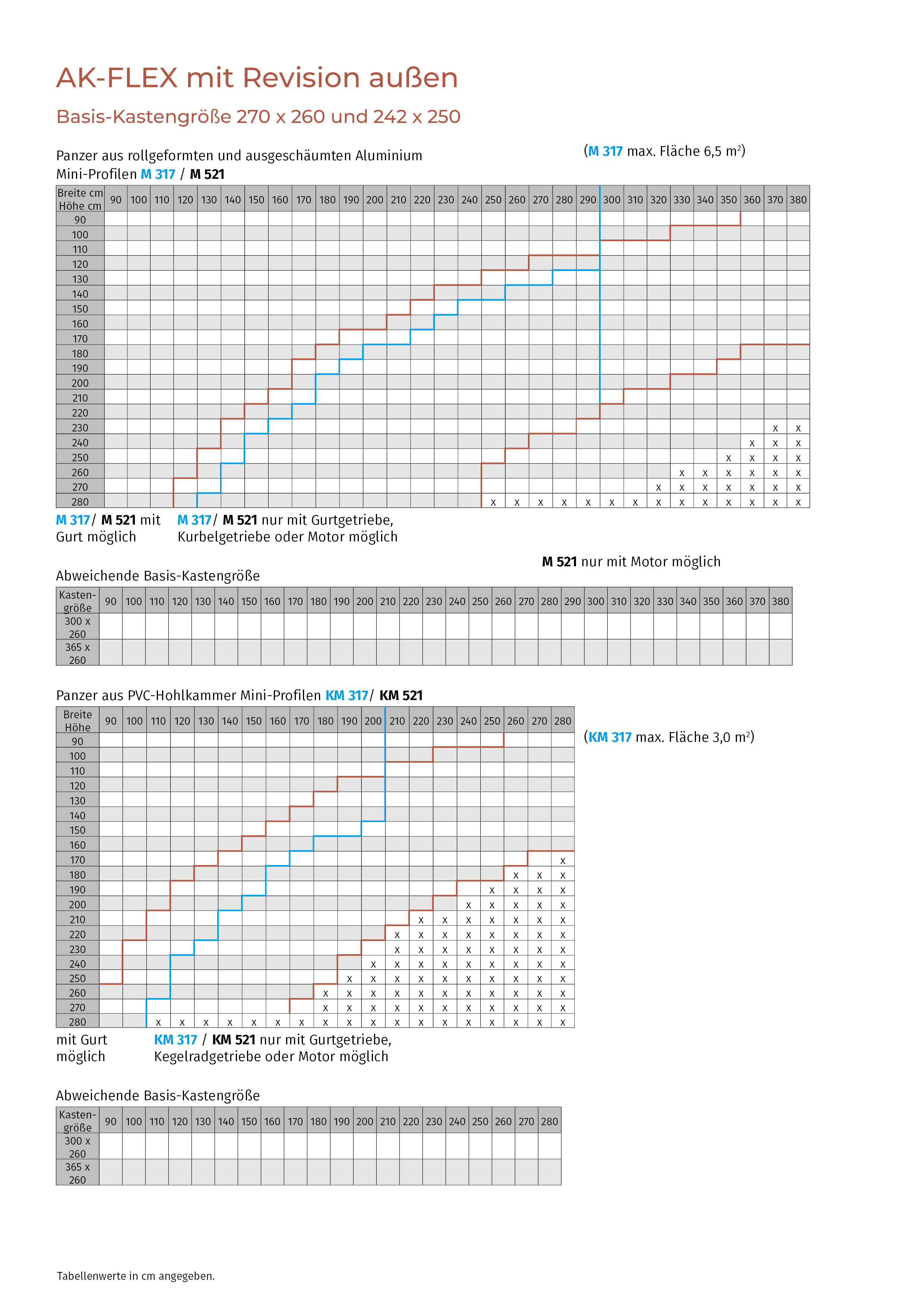 | Ausführungen: | Basis-Kastengröße 270 x 260 und 242 x 250, Geschäumter Aufsatzkasten AK-FLEX mit Revision außen |