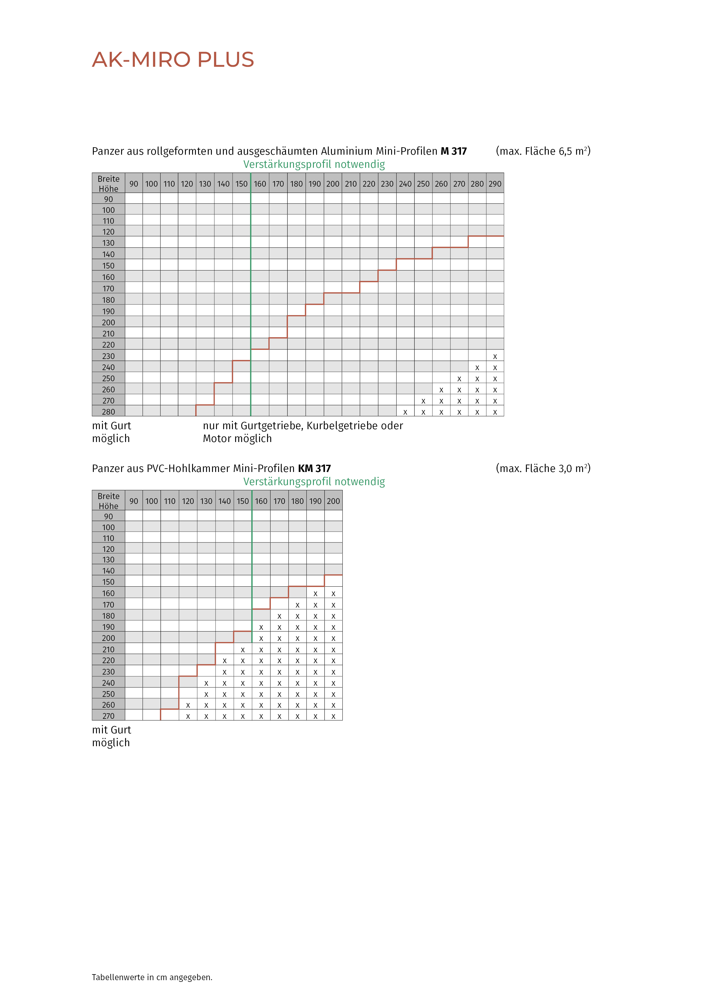 | Behang: | KM 317 PVC-Rollladenprofil mit Rillen, M 317 ausgeschäumtes Aluminiumprofil mit Rillen |
