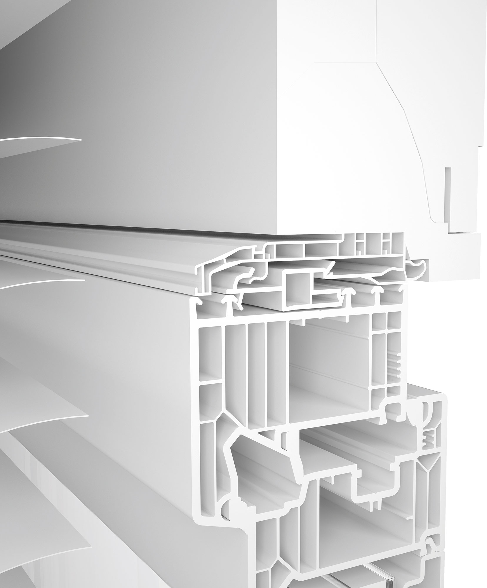 Mit seiner kompakten, wärmegedämmten Bauweise sorgt der geschäumte Aufsatzkasten nicht nur für hervorragende Dämmwerte, sondern auch für ein modernes und unauffälliges Erscheinungsbild an der Fassade. Der integrierte Raffstore bietet zuverlässigen Sonnenschutz, reguliert das Raumklima und steigert den Wohnkomfort – ganz gleich, ob im Sommer oder Winter.