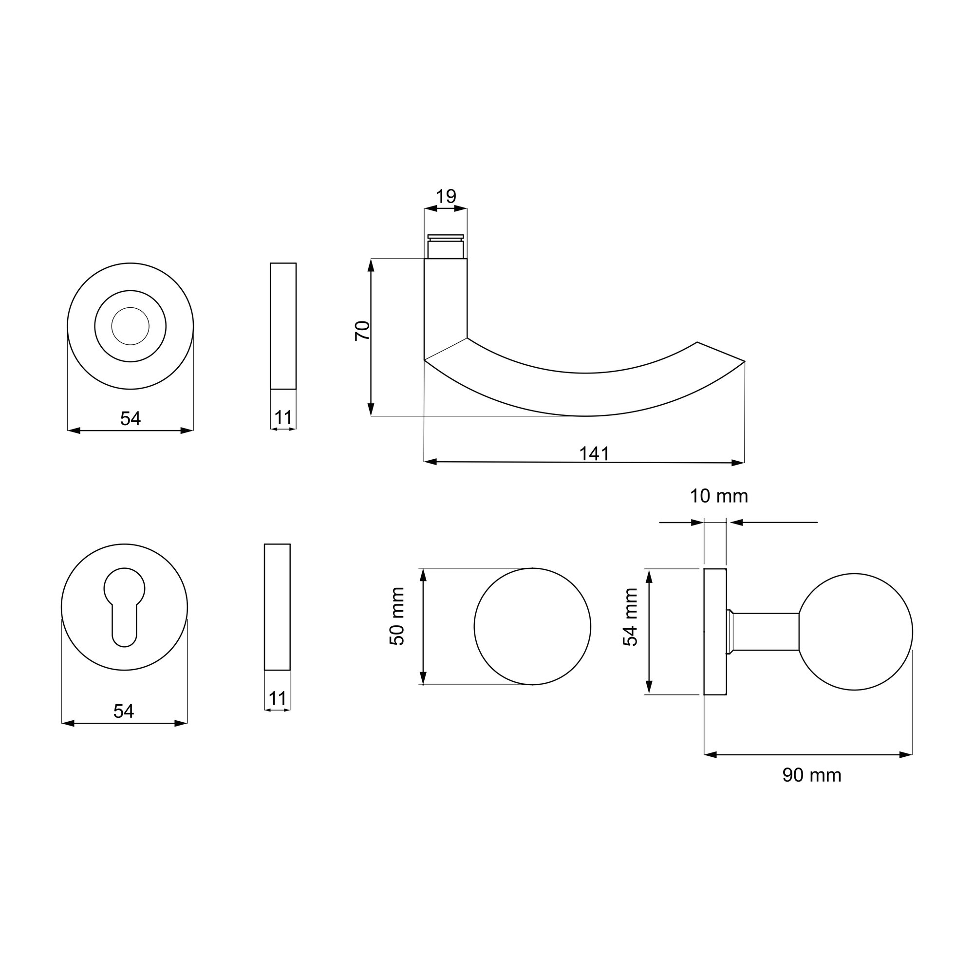- Abmessung Griff: Ø 19 mm