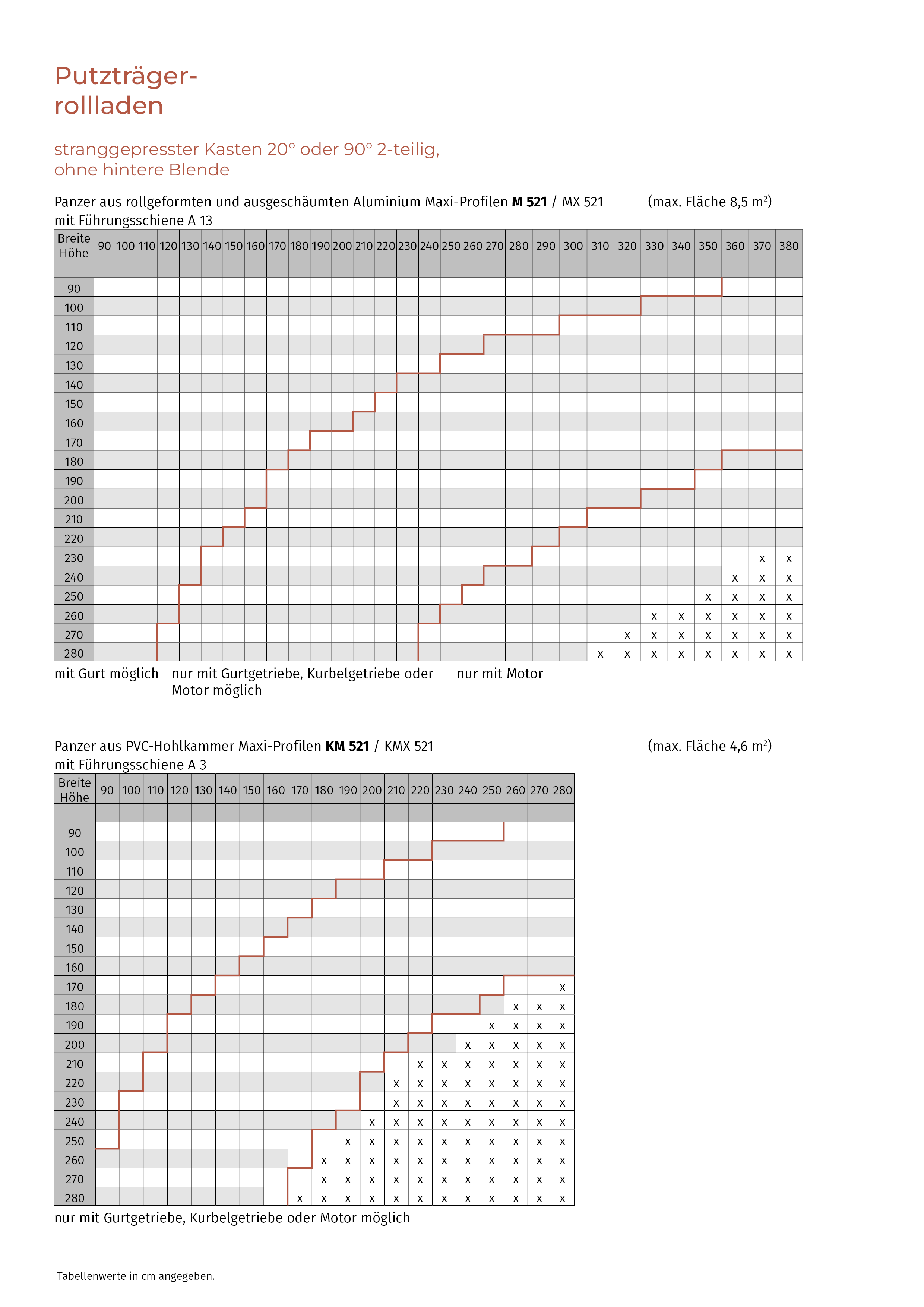 | Behang: | KM 521 PVC-Rollladenprofil mit Rillen, KMX 521 PVC-Rollladenprofil ohne Rillen, M 521 ausgeschäumtes Aluminiumprofil mit Rillen, MX 521 ausgeschäumtes Aluminiumprofil ohne Rillen |