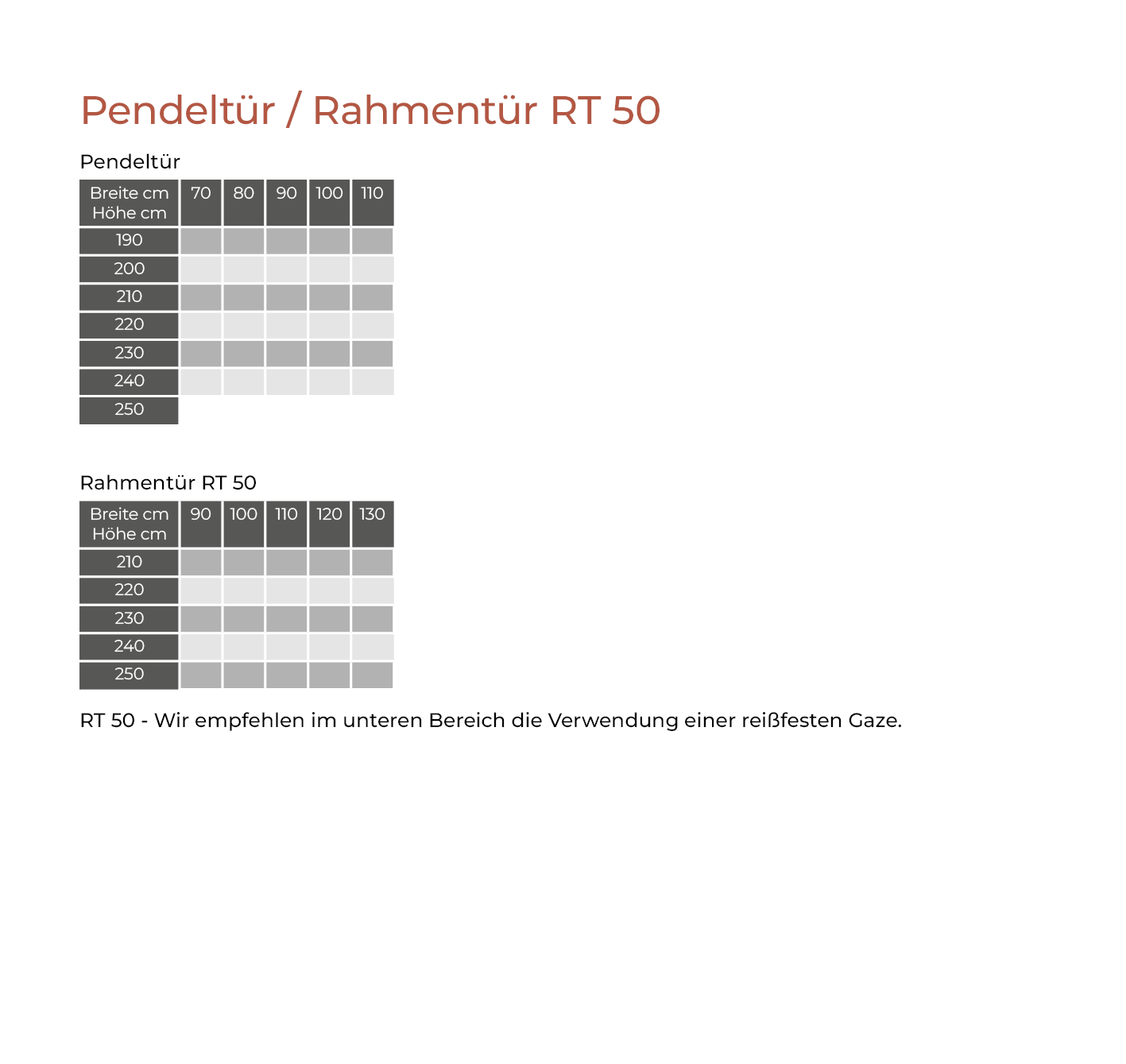 | Funktion: | Pendeltür , Rahmentür RT 50 |