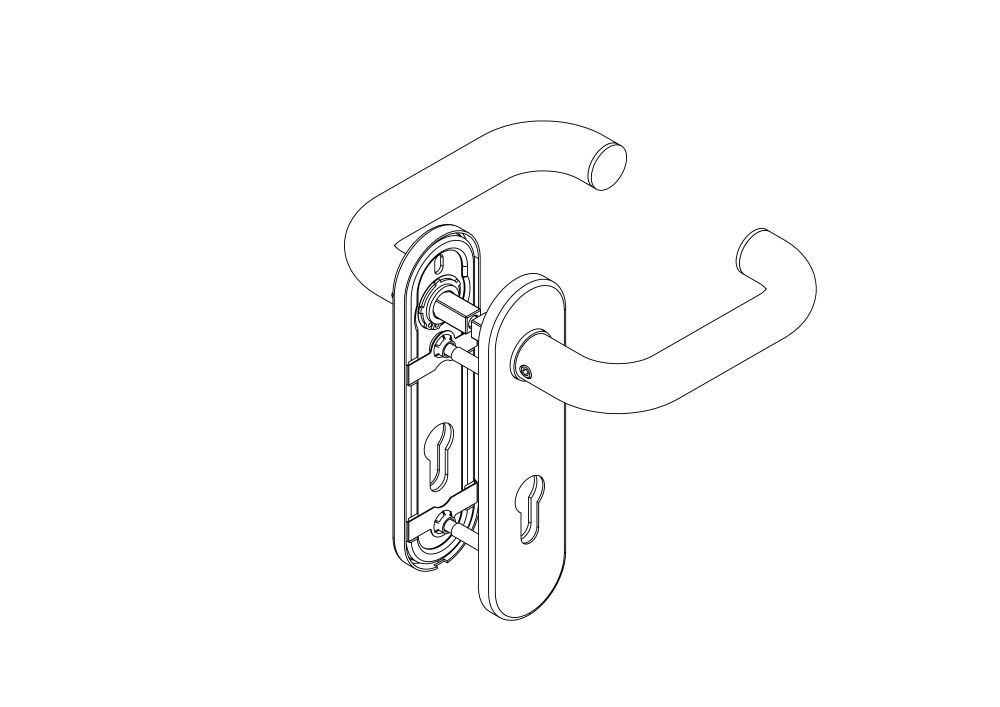 - Drückerführung mit einem wartungsfreien Gleitlager aus selbstschmierendem Kunststoff