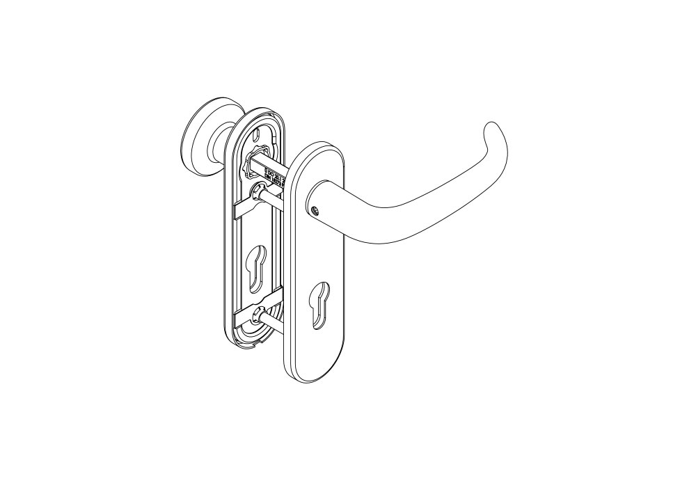 Drückerführung mit einem wartungsfreiem Gleitlager aus selbstschmierendem Kunststoff. Festdrehbar gelagerter Drücker. DINLinks / DIN-Rechts verwendbar. Stahlunterkonstruktion mit Stütznocken. Verdeckte, durchgehende Verschraubung. Als Wechselbeschlag mit Knopf K-130 und K-165.