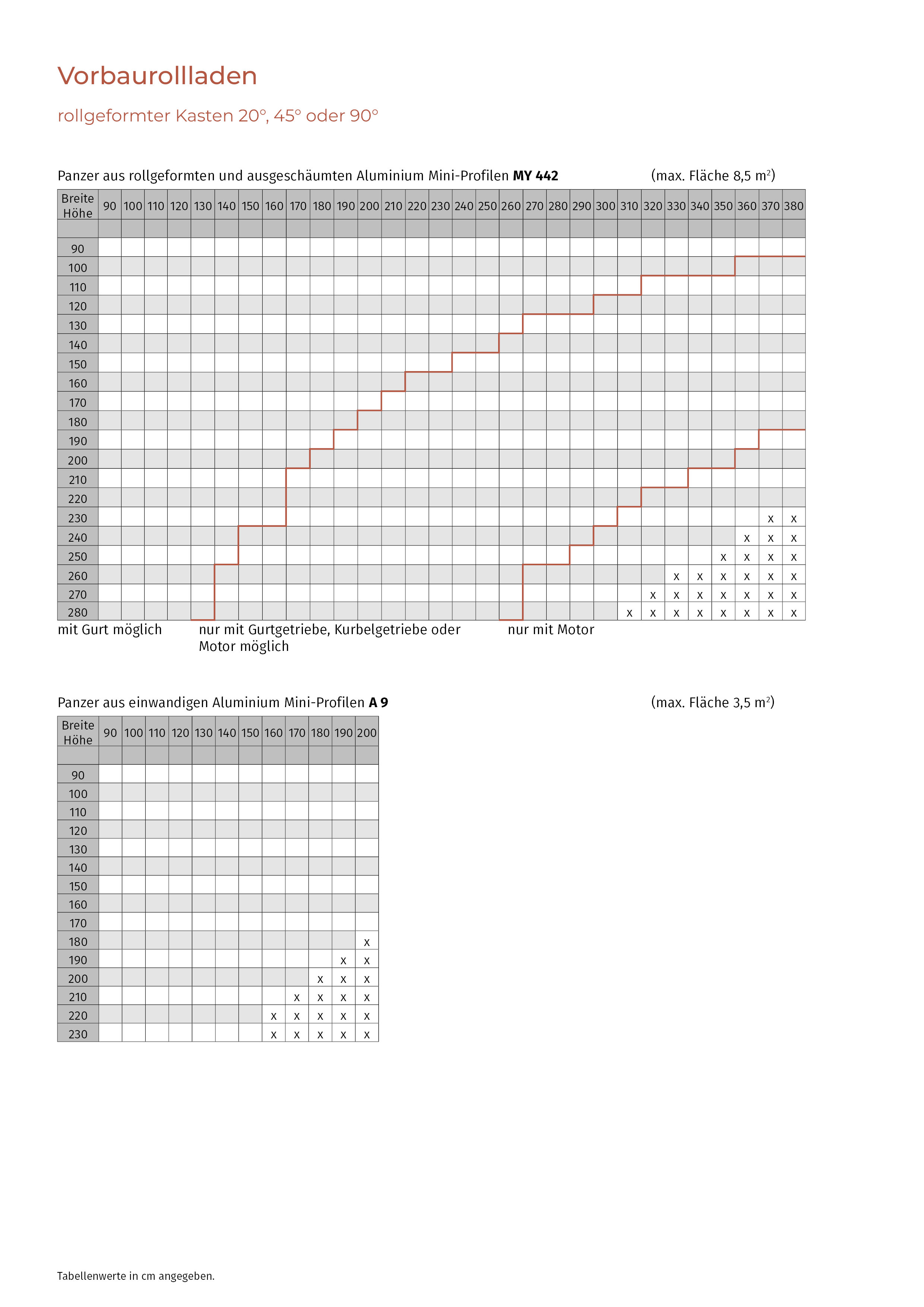 Vorbaurollladen rollgeformt, 20°/45°/90° (A9, MY 442)