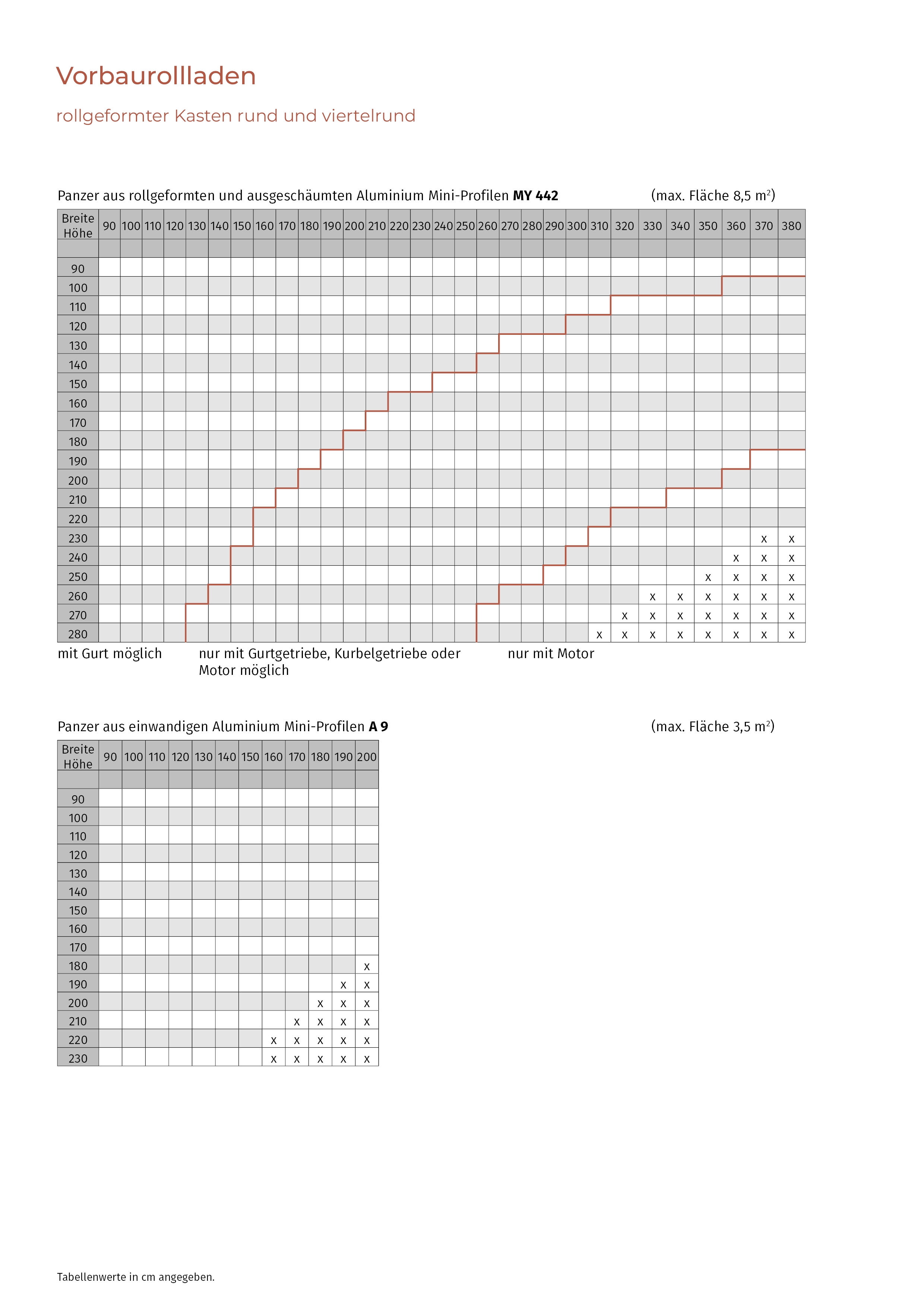 Vorbaurollladen rollgeformt, rund und viertelrund (A9, MY 442)